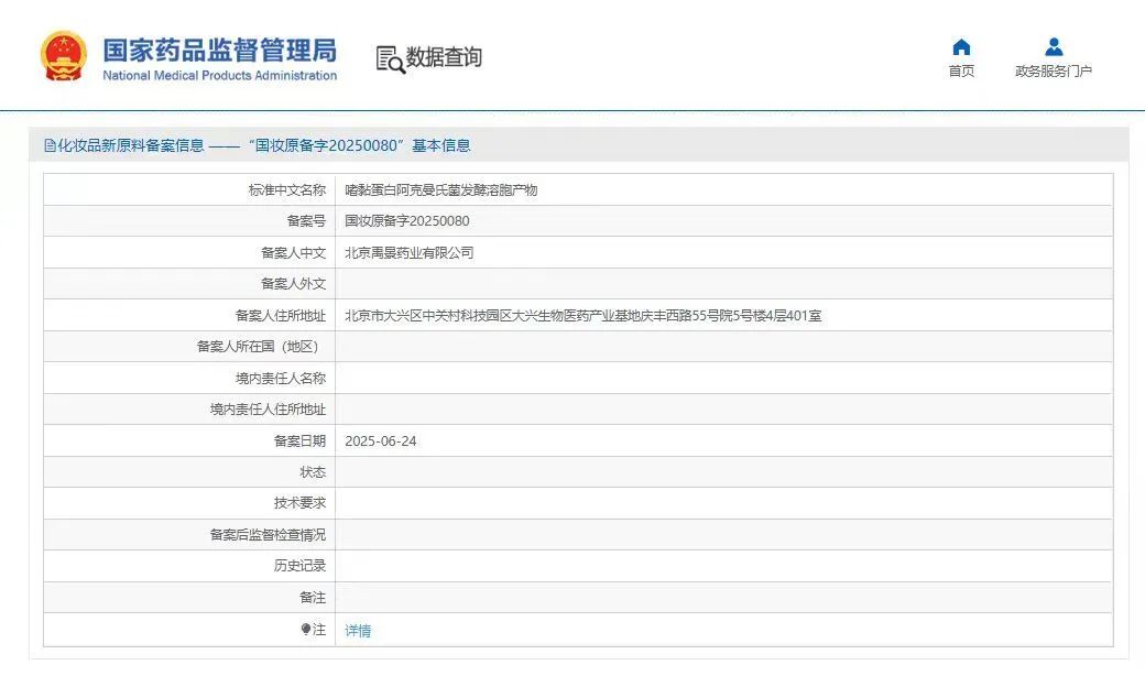 中国北京,2025年6月24日——凯发k8国际首页登录(股票代码:688068)孵化的北京禹景药业有限公司(以下简称“禹景药业”)自主研发的Akkermansia muciniphila YG2602(AKK YG2602)成功通过国家药品监督管理局化妆品新原料备案(备案号:国妆原备字20250080),成为全球首个获批的AKK菌化妆品新原料。