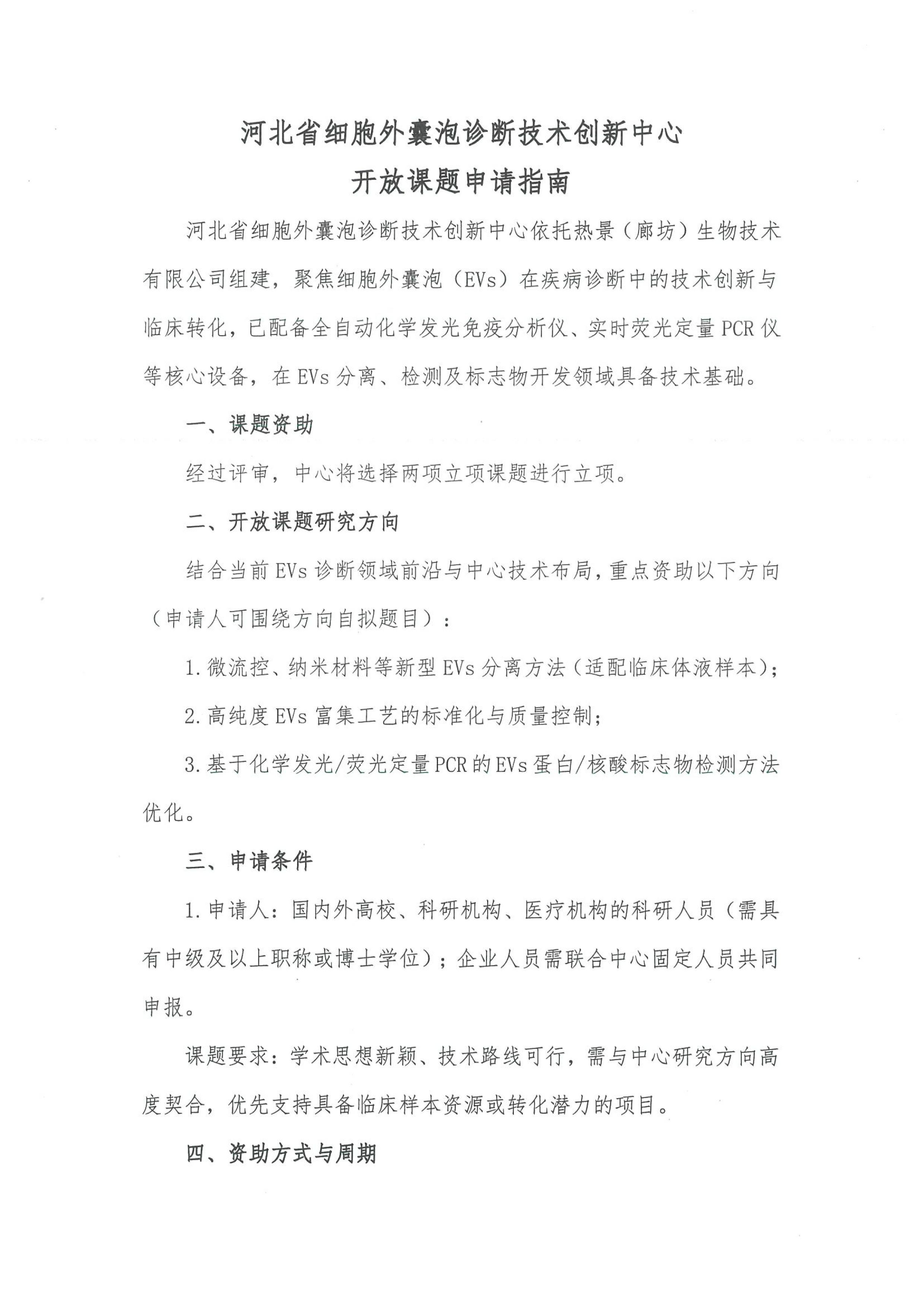 河北省细胞外囊泡诊断技术创新中心开放课题申请指南