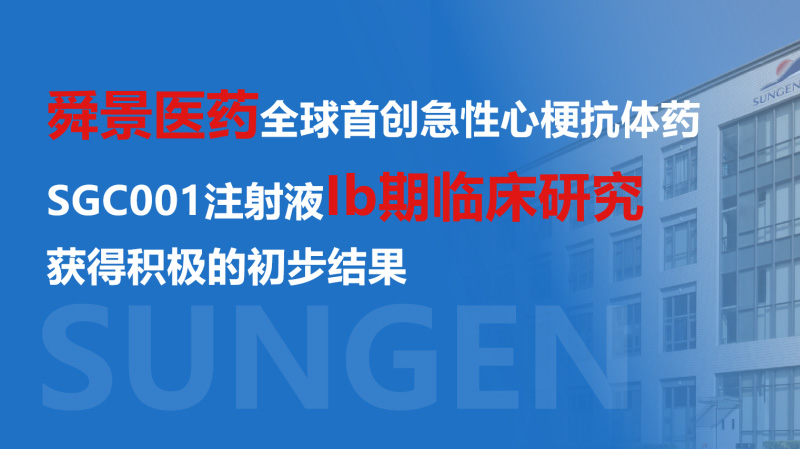 重大突破!舜景医药「全球首创」急性心梗抗体药SGC001Ib期临床研究...